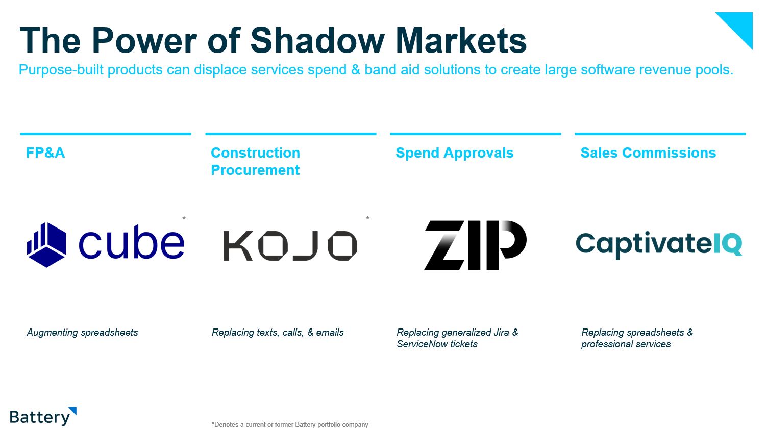 Battery is very excited about the future of leave management. In other types of technology sectors, we’ve witnessed “shadow markets” where purpose-built products can eat away at services spend and band-aid solutions to create large pools of software revenue—such as in Cube* for FP&A, Kojo* in construction procurement, Zip in spend approvals, or CaptivateIQ for sales commissions. We believe software can unlock $1B in spend through managing leave of absences alone by replacing existing services consumption.