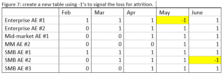 BB: This is difficult and imprecise. The idea here is to look across your entire AE population and incorporate whatever level of attrition you feel is right. Again, 20% is a decent estimate.